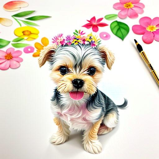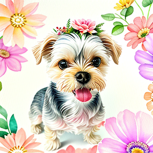 꽃 머리와 꽃들 속에 예쁜 댕댕이 스타일