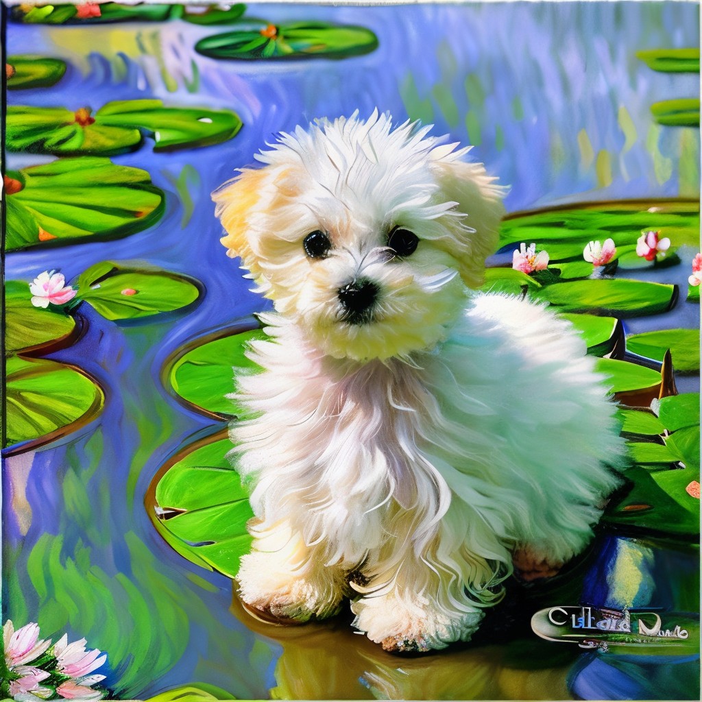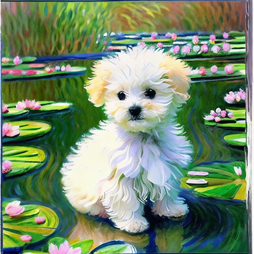 이번에 의뢰받은 작품은 '수련'🪷으로 유명한 클로드 모네의 화풍으로 그린 반려견의 모습입니다.